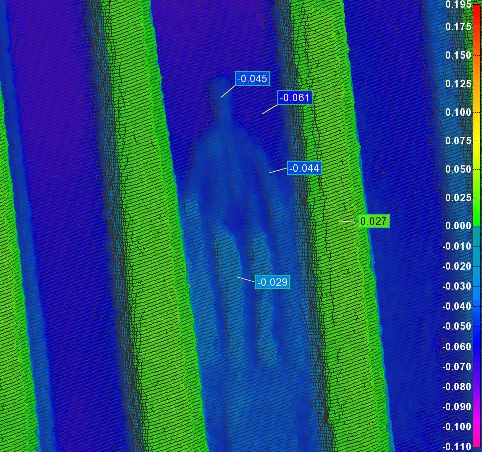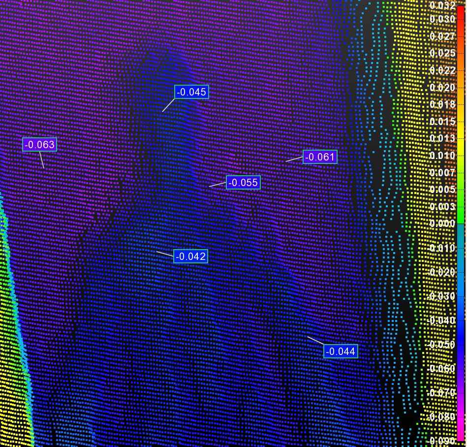 扫描 2 是一种低密度扫描,涉及每 37.5 微米获取一次测量值。它在 9 秒内提供了近 1/2 百万个数据点。此扫描代表我们的工业客户所需的更典型的点密度。甚至比这低得多的密度通常也足以进行 3D 几何分析。