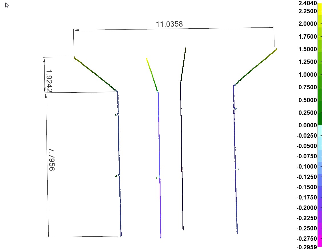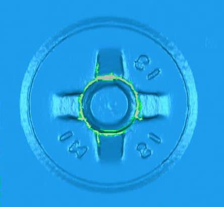 如图所示(蓝色图像),埋头孔区域的安装后扫描提供了良好的齐平度视觉检查。可以全自动分析铆钉头与周围平面的齐平度。